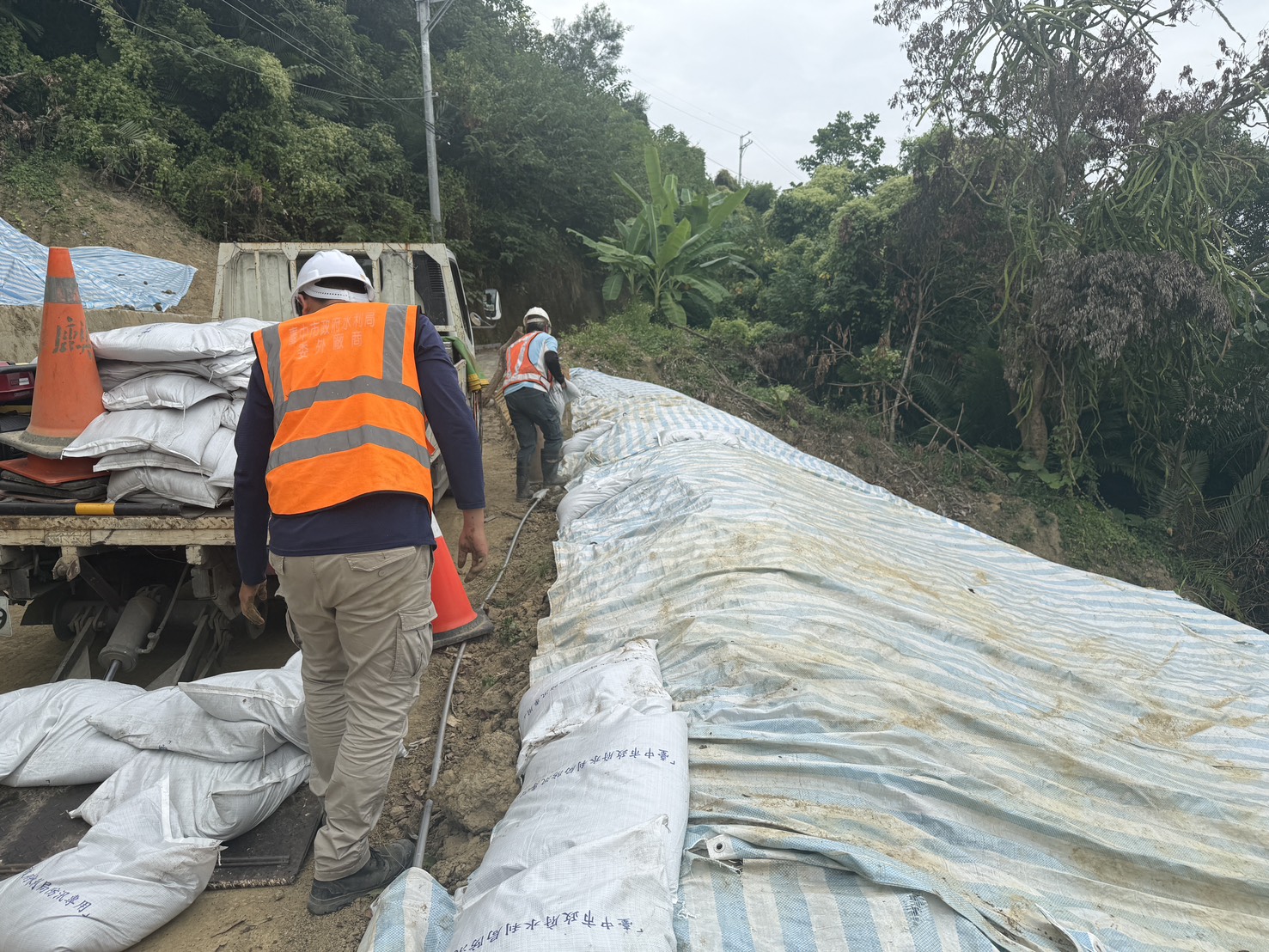 水利局表示,市府秉持「防災先於救災」的理念,針對邊坡土石裸露處,專業評估後已採取帆布覆蓋措施,減少雨水沖刷造成的二次災損。