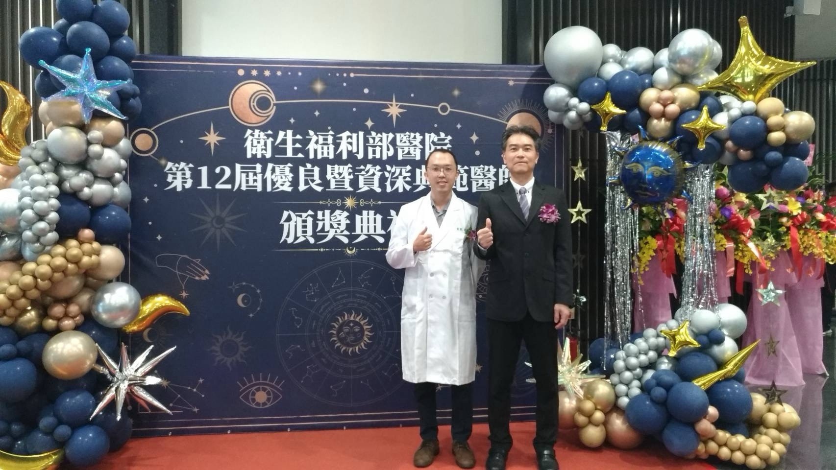 胸腔病院院長黃紹宗(右)與獲得優良醫師的余弘斌。(胸腔病院提供)