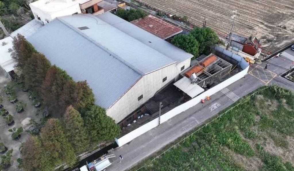 台中非洲豬瘟案場採用二十四公尺高甲種圍籬,並於內側增設C型鋼支架,支撐結構以鋼筋打入地面並焊接固。(記者陳金龍翻攝)