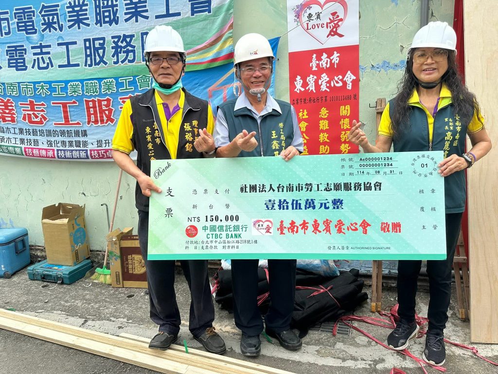 總部設於南區的東賓愛心會,最早是創會理事長、南都里里長高麗雲集合其姐妹淘一起行善的「聯誼會」,直至民國一0一年正式立案為東賓愛心會,該會一直以凝聚社會各界力量,關懷弱勢、急難救助為宗旨,每年都為無法安葬的弱勢民眾辦理義葬;今年還送愛到七股,關懷颱風受災戶;每年年關前辦踏宴請無家可歸的寒士圍爐,做出好口碑。