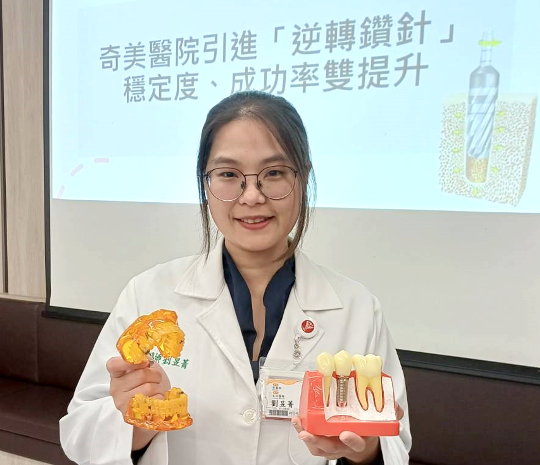 奇美牙醫部牙周病科主治醫師劉昱菁指出,新技術可減少手術創傷,提升病人舒適度,同時也提高植牙的初期穩定度與長期骨癒合的成效,為過去因骨量不足而對植牙卻步的病人,打造微創、安全、高穩定度的植牙選擇。