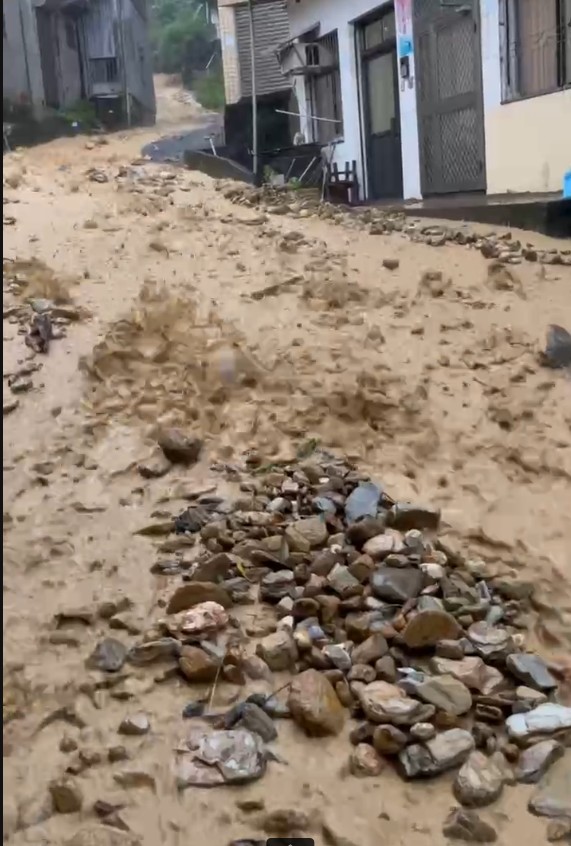 鎮長李明哲表示,現場土石仍持續滑落,巷道及排水溝已被淤泥堵塞,導致水流不順,前後上百戶居民民宅進水,有的淹了快到小腿,四十多戶先進行安置。