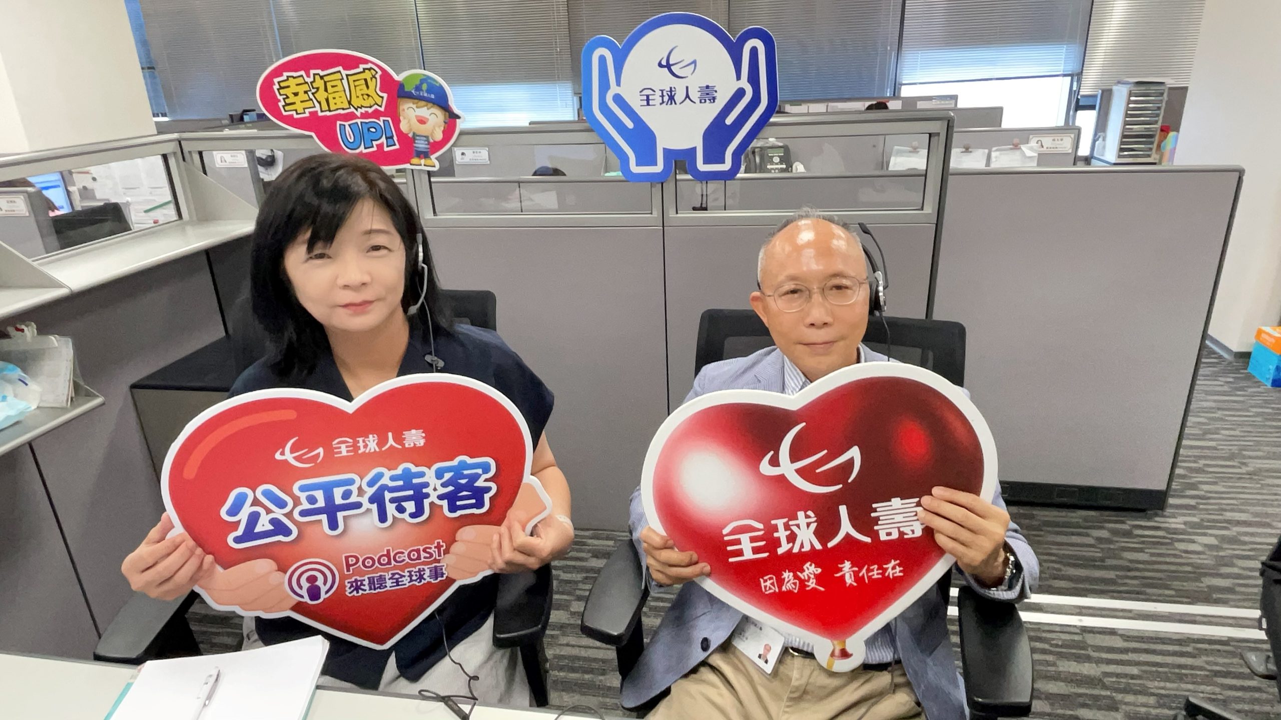 全球人壽舉辦「董事一日客服體驗」,獨立董事楊文斌(圖右)化身超級客服參與電話接聽服務,傾聽客戶真實需求。(全球人壽提供)
