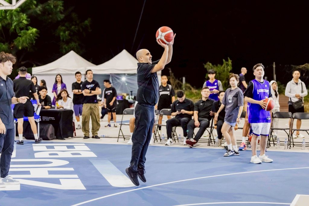 攻城獅總教練威森在三分球大賽中大顯身手,用精準外線幫助獅紫軍贏得贈品。(攻城獅提供)