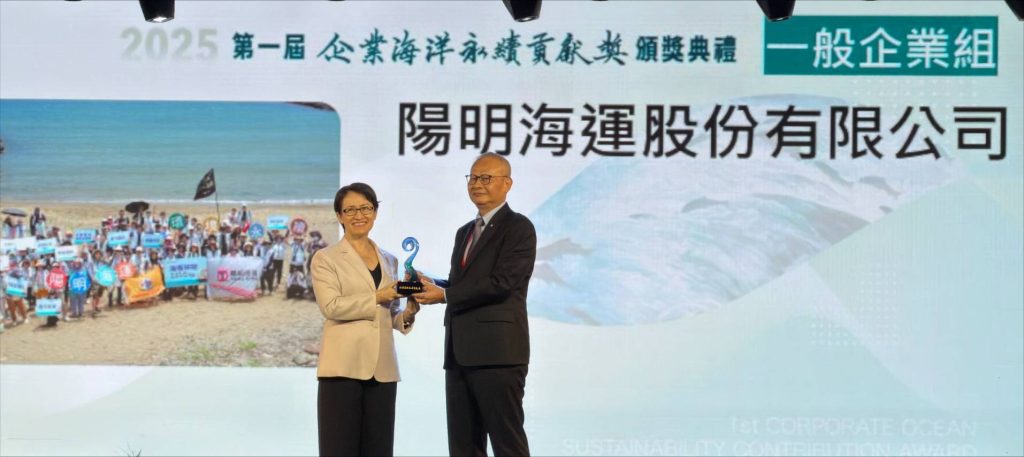 陽明海運公司秉持「與海共生、永續航行」的核心理念,以多項海洋永續行動落實航運業推動海洋保育作為,榮獲海洋委員會首屆「企業海洋永續貢獻獎」肯定。