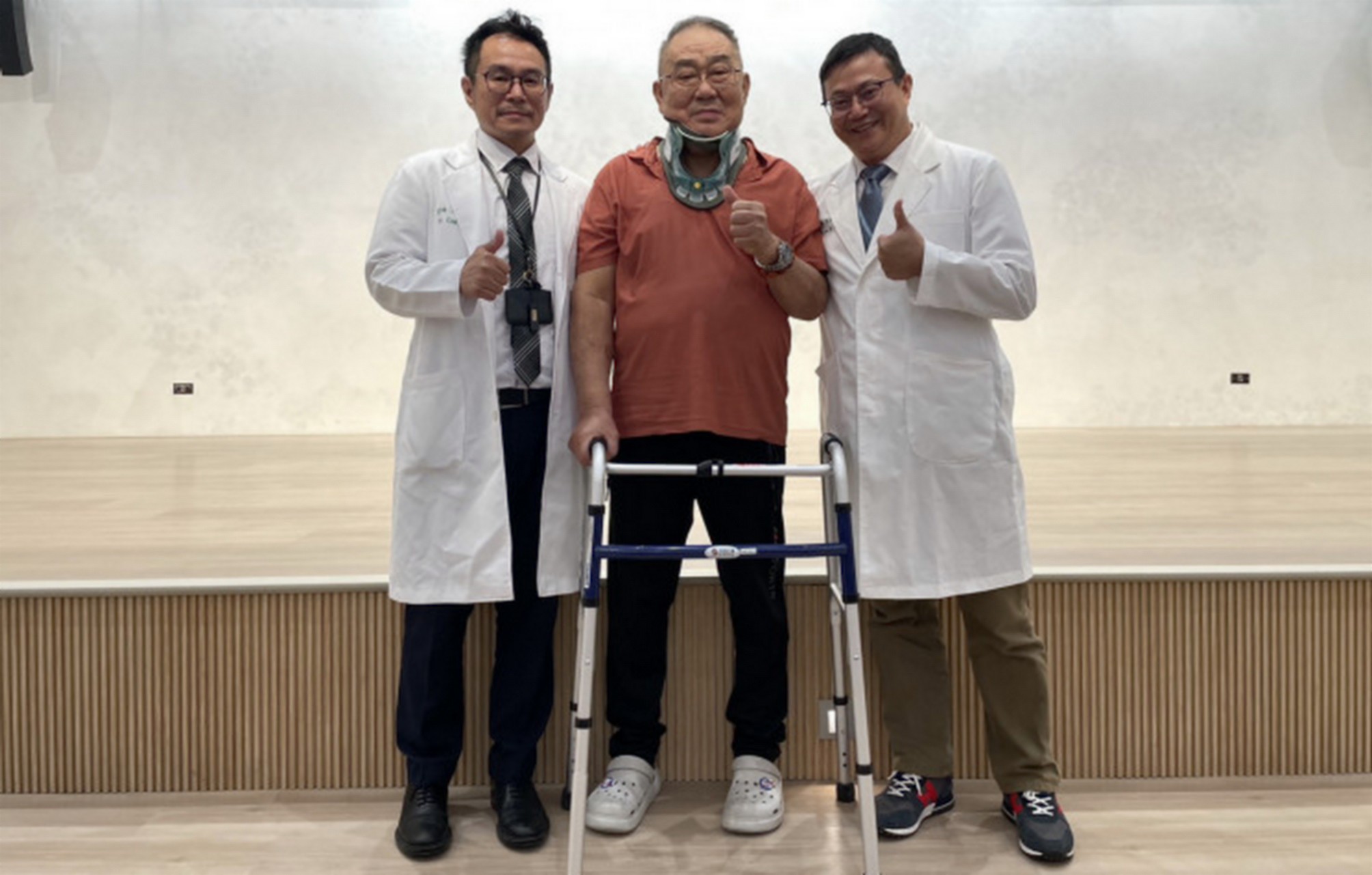 醫療團隊在手術前啟動跨科整合照護,包括暫停抗凝血藥、進行心臟超音波檢查及新陳代謝科會診,確保病患在安全狀態下接受手術,手術採微創顯微技術完成頸椎椎間盤切除與支架融合,全程約60分鐘,出血量僅5C.C.,降低手術與麻醉負擔。黃男術後病人神經功能明顯改善,麻木感減輕,雙腳恢復力量,成功重拾行動力。
