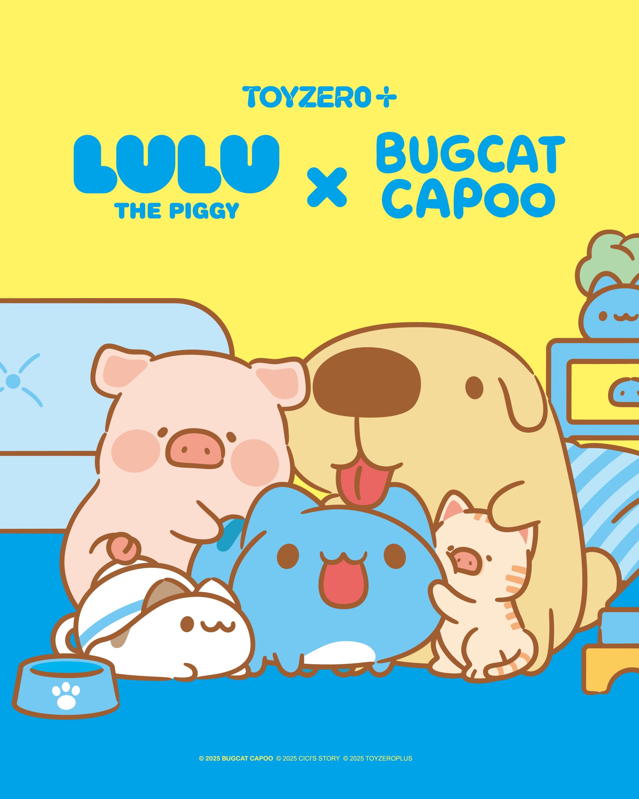 這場萌力爆發的跨界合作,由香港潮玩品牌TOYZEROPLUS與台灣插畫家亞拉(Yara)共同策劃,將慵懶呆萌的「罐頭豬LuLu」與淘氣吃貨的「貓貓蟲咖波」一同帶上餐桌。誕生於罐頭裡的小精靈LuLu豬,以輕鬆自在的模樣傳達「讓日常更可愛」的理念,成為現代人最療癒的陪伴;咖波則以「看到食物就眼睛發亮」的吃貨個性與六隻腳造型席捲亞洲,成為最具代表性的療癒系角色之一。