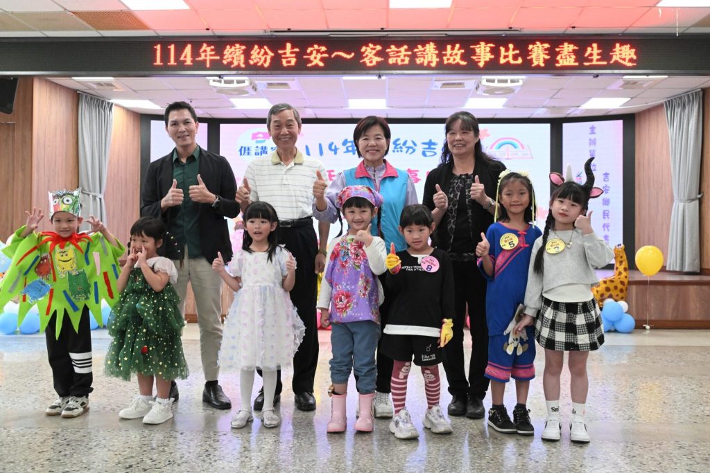 鄉公所為推廣客語學習、培養兒童語言表達力與文化素養,舉辦「一一四年繽紛吉安客話講故事比賽盡生趣」活動,鄉長游淑貞和家長、老師們一起為小朋友們加油打氣。