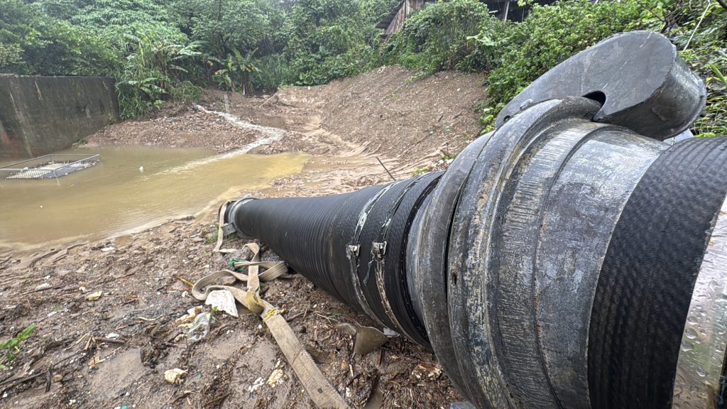 但經過市府在麥金路七百五十號施作滯洪池後,今年溢流情況明顯改善很多,不過,卻發現雨量太大,山上垃圾及樹枝沖刷下來堵住豎井排水孔,經過工程單位清除,共清出五噸垃圾,未來要加強巡查。