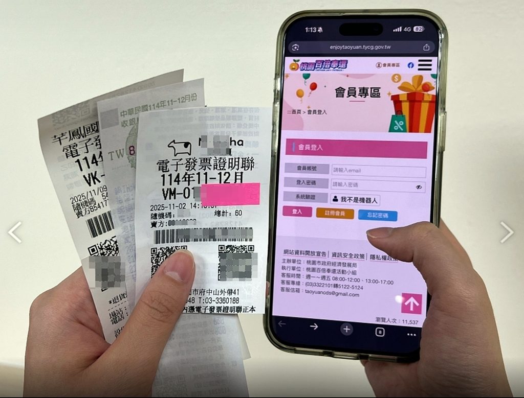 「普發一萬‧桃園百倍奉還」活動十三日開跑,明年十二月三十一日前,只要在桃園設立登記店家消費一百元並至活動官方網站登錄發票,就有機會抽中現金一百萬元最大獎。