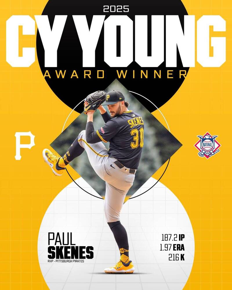 2025年MLB賽揚獎13日揭曉,結果毫無懸念;底特律老虎王牌左投史庫柏蟬聯美聯賽揚獎,而匹茲堡海盜當家球星史金斯則以全票之姿勇奪國聯賽揚獎。
