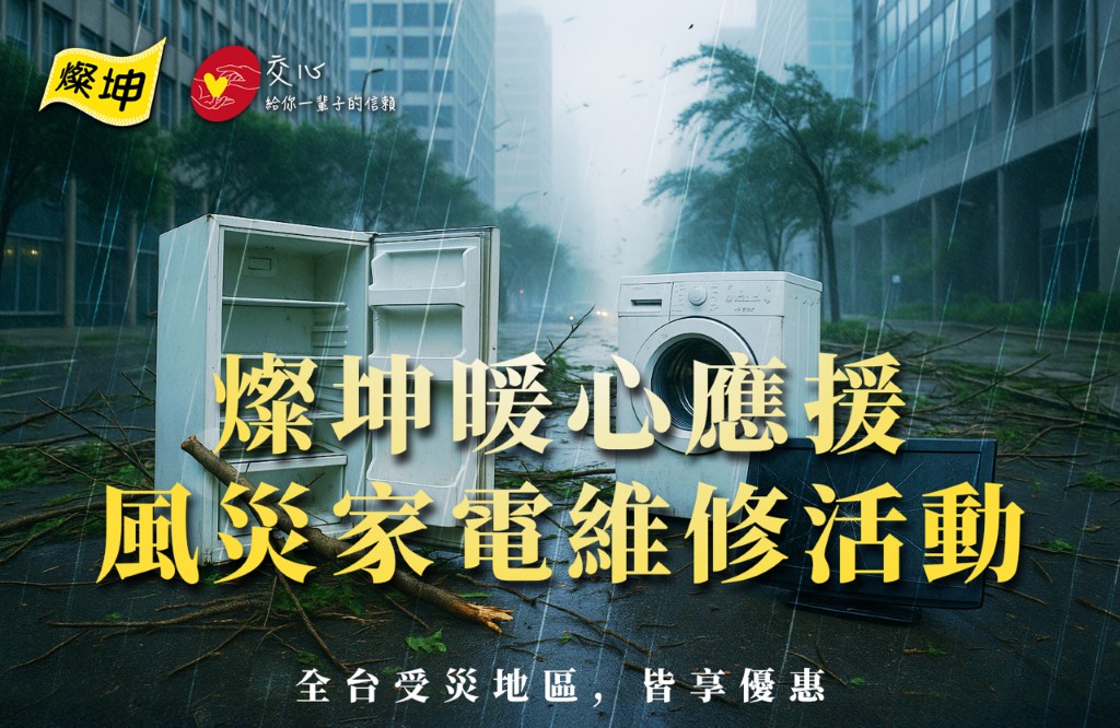 鳳凰颱風外閃襲台,但台灣多地仍受到颱風外圍環流影響,造成天氣不穩,易有強風及較大雨勢發生。燦坤3C家電本著企業社會責任精神,用溫暖回應天災,用服務修復生活,陪您一起修復家園,針對「鳳凰」颱風造成的風災損害發起暖心應援方案。