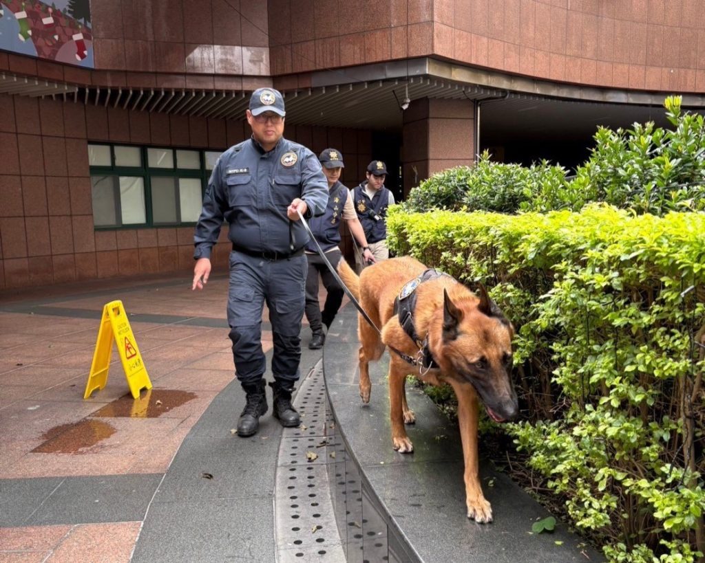 場檢小組會同偵爆犬與警衛犬於耶誕城會場執行爆炸物偵測與巡守。(讀者提供)