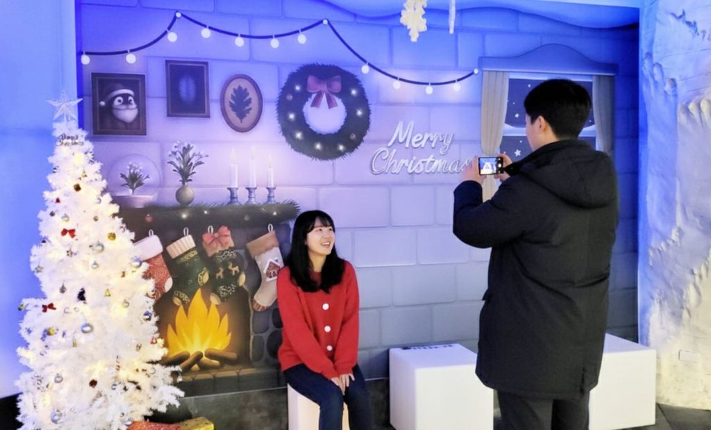 屏東海生館於聖誕節活動期間,在世界水域館極地區特別佈置充滿節慶氛圍的場景,設置雪白聖誕樹與雪屋打卡牆,讓民眾在極地寒冷的溫度中,欣賞企鵝與鳳頭海鸚鵡的療癒模樣,彷彿置身雪國,感受冰雪世界裡的暖心祝福。