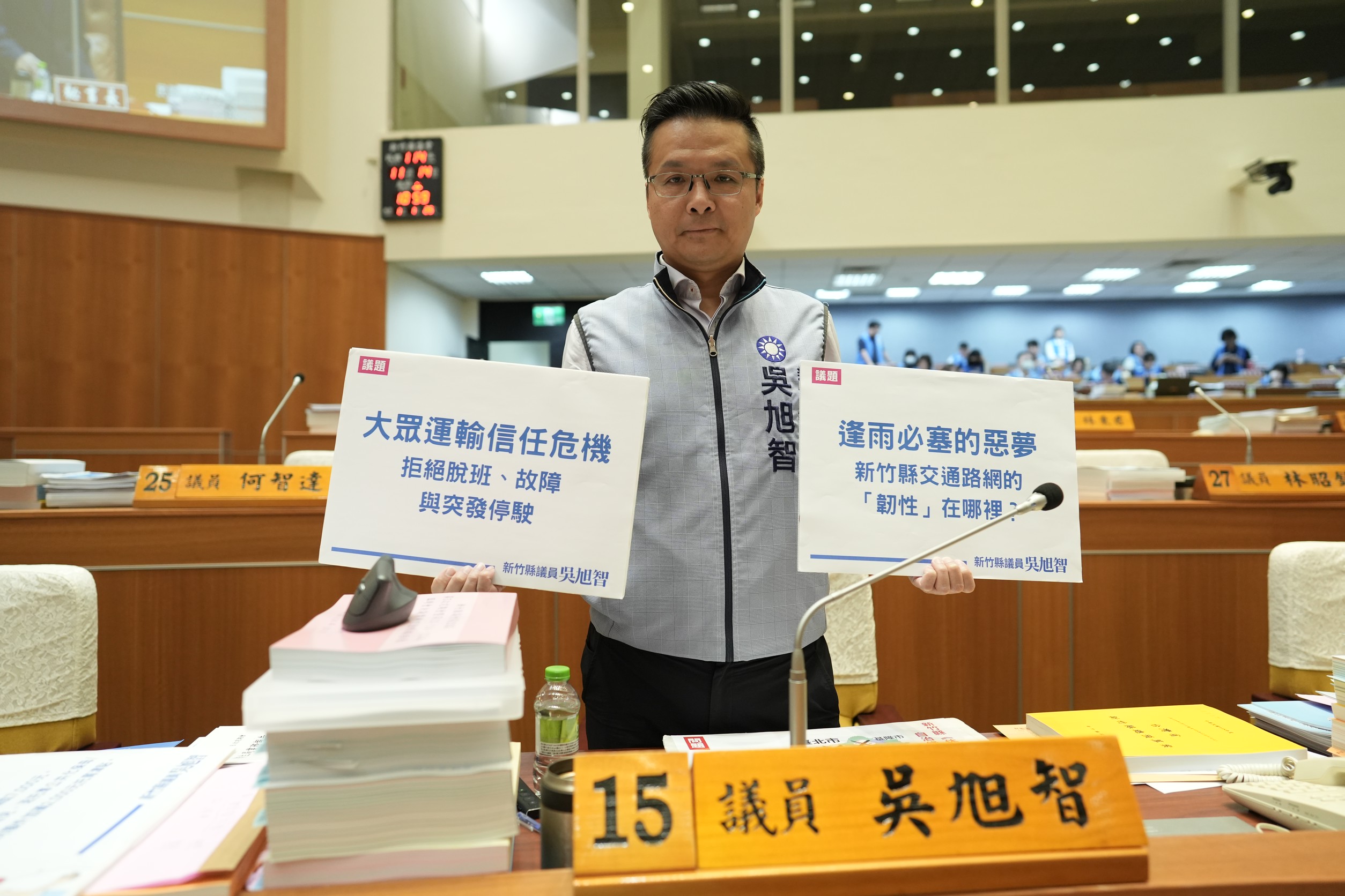 新竹縣議員吳旭智十四日總質詢時,關心校園周邊通學交通壅塞的問題,建議可將智慧停車柱結合科技執法,減少違停並增加周轉率。他也關心近年流行的桌遊店可能出現聚賭或擾亂安寧等疑慮,希望縣府能透過法規杜絕,並加強查緝;新竹縣長楊文科與相關局處均積極回應。