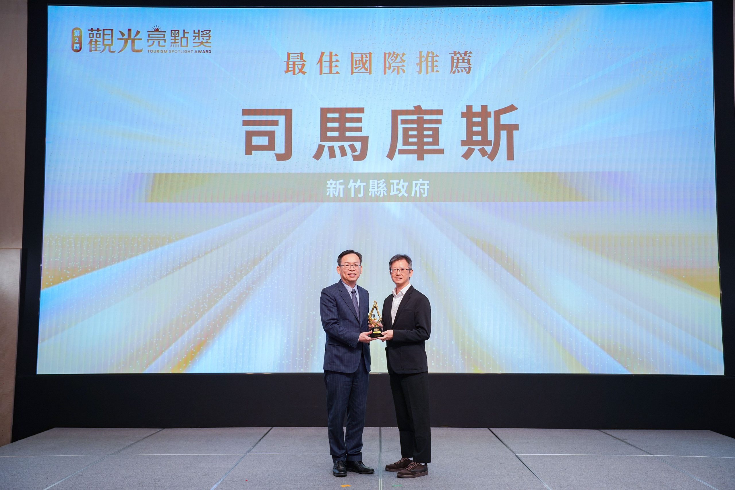 新竹縣「司馬庫斯」在交通部觀光署舉辦的第二屆「觀光亮點獎」中,從全臺一百九十一處景點中脫穎而出,不僅入選全國前三十大亮點,更榮獲最高榮譽之一「最佳國際推薦獎」,展現原鄉部落魅力受到國際旅客青睞。而「峨眉湖」也成功入選二0二六年至二0二七年「臺灣觀光一百亮點」,成為竹縣旅遊熱搜新焦點。