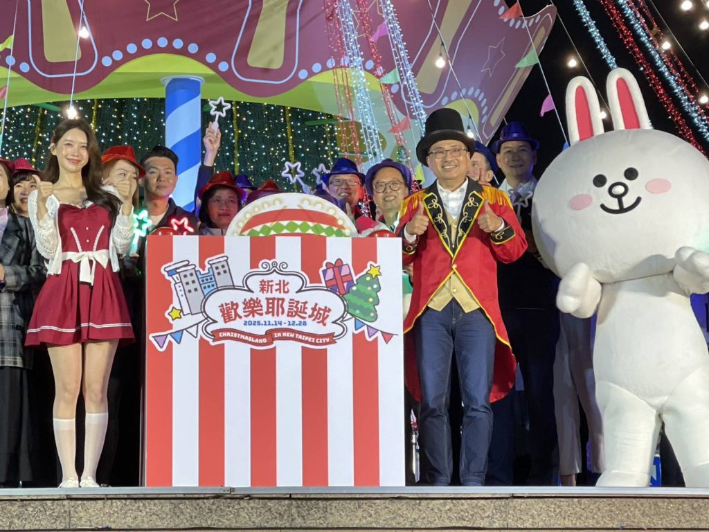 「二0二五新北歡樂耶誕城」十四日晚間登場,由奇幻馬戲大秀率先登場,融合華麗燈光與精湛特技,營造繽紛歡樂的節慶氛圍。隨後,啦啦隊女神李雅英與LINE FRIENDS人氣角色兔兔驚喜現身,與市長侯友宜熱情互動。侯友宜與各局處首長及來賓完成點燈儀式,宣布為期四十五天的耶誕城開跑。