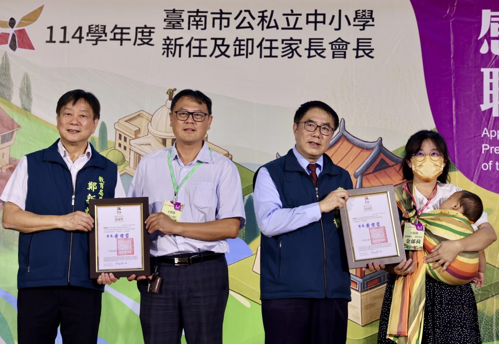 市長黃偉哲頒發致賀狀給各校新任家長會長。(市府提供)