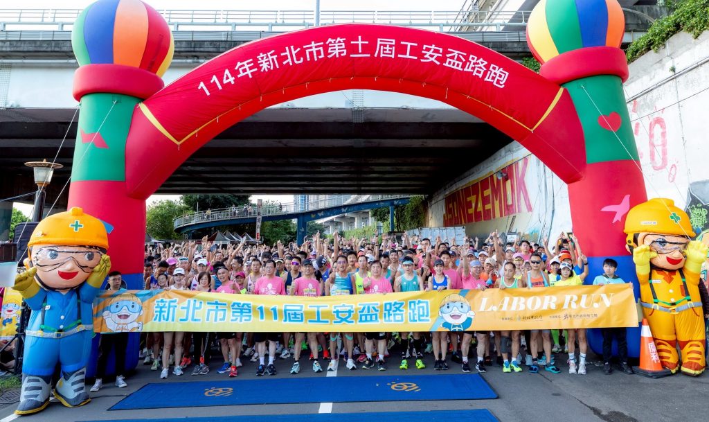 新北市府勞工局「第十一屆工安盃路跑」十五日清早在華江河濱公園自行車道熱鬧登場,有逾三千名跑者參賽;由市府秘書長邱敬斌、勞工局長陳瑞嘉與勞檢處長林澤州主持鳴槍,大家迎著晨曦奮力起跑,追求職場安全與身心健康。其中男子組十公里賽由日本來台從事補教工作的吉田智裕勇奪第一名。