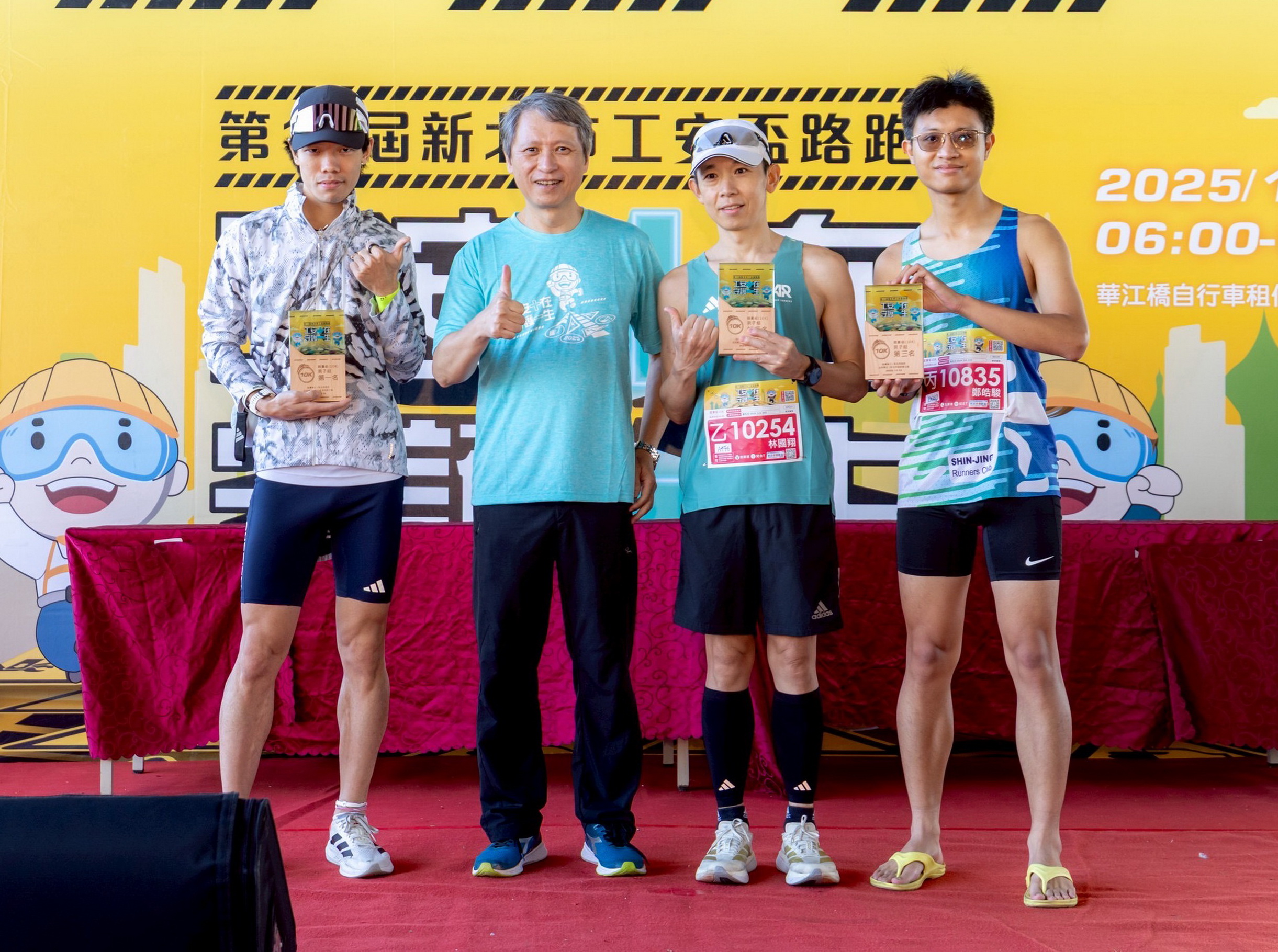 另市府觀旅局「最速專委」廖武輝取得男乙組第一名,鴻海集團、台灣檢驗科技的李汶政、詹佳諭分別取得男丙組、女丙組第一名,顯示新北轄內企業積極鼓勵員工運動健康。