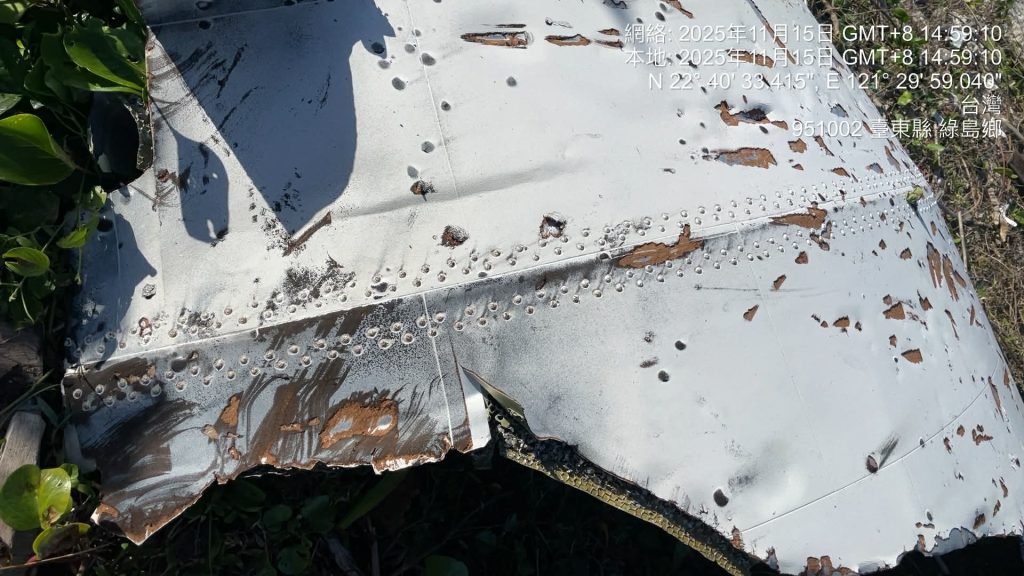 台東綠島流麻溝和柴口海邊十五日有民眾發現兩塊複合材料片,認為類似飛機蒙皮,海巡和軍方人員獲報,仍待詳細檢視確認。