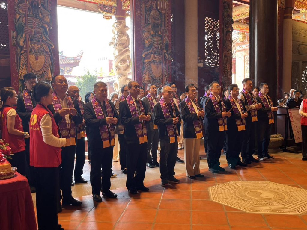 國民黨副主席張榮恭一行前往江蘇昆山,參訪長三角地區台商、台胞的信仰中心「慧聚天后宮」。(國民黨提供)