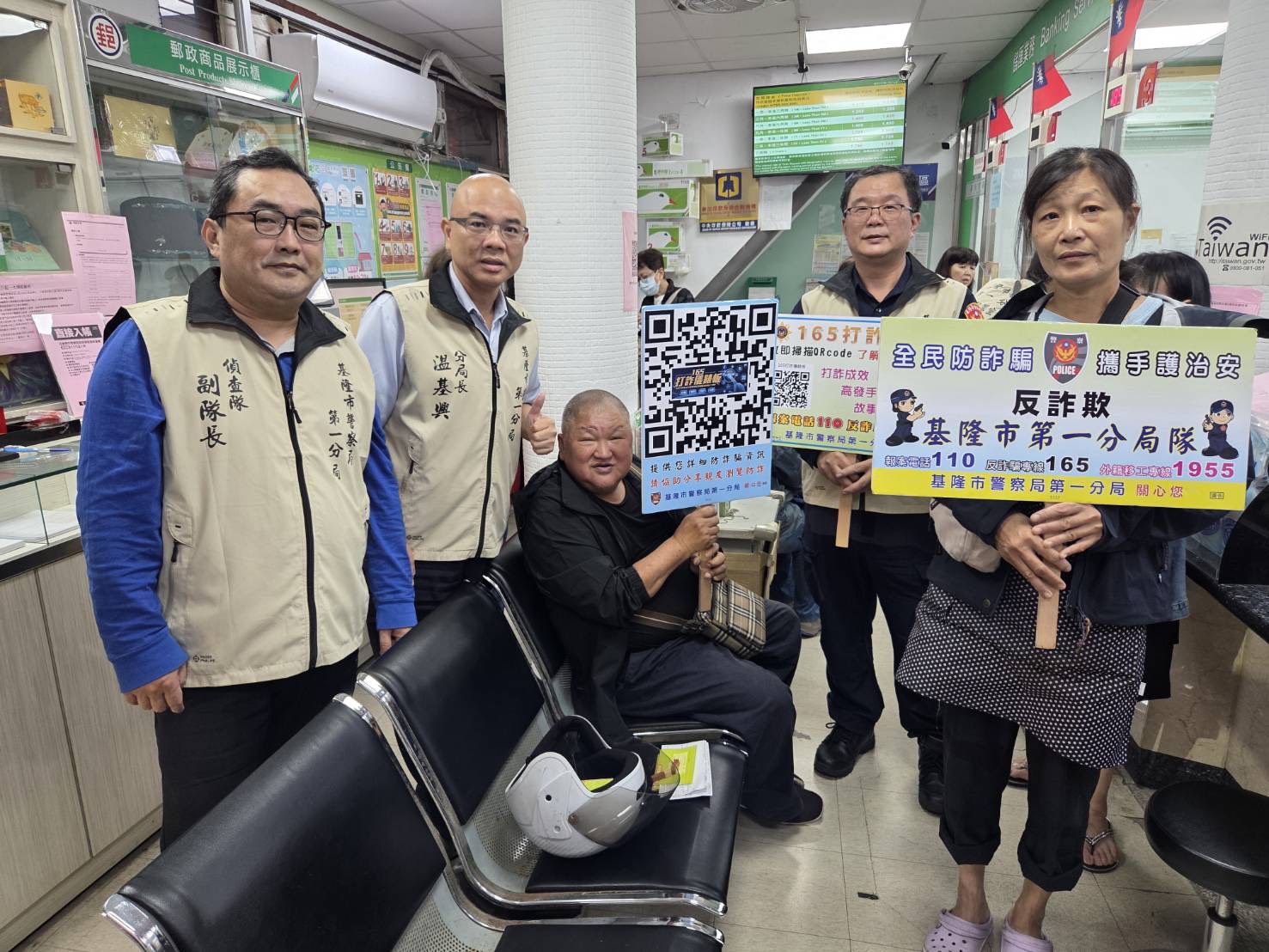 警一分局為防範民眾被詐騙集團施以騙術,將民眾騙到金融機關提(匯)款,由分局長溫基興率員,前往拜訪轄區內台北富邦銀行基隆分行、國泰世華基隆分行、基隆孝三路郵局、彰化銀行仁愛分行、基隆第一信用合作社愛三路分社等,主動與第一線行員宣導,加強攔阻假投資、假檢警、解除分期付款及網路交友詐騙等常見手法,期盼透過金融機構與警方的緊密合作,降低民眾受騙風險。