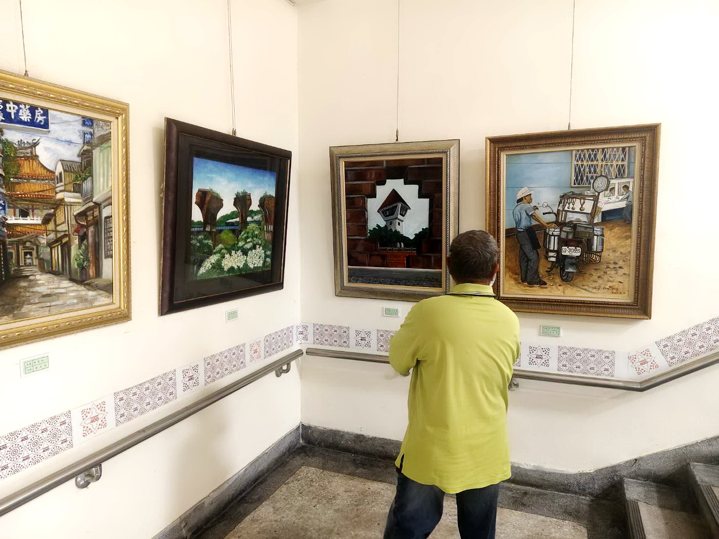 區公所內掛滿政令宣導,顯得生硬。近幾年大家都動腦筋讓公所多餘的空間變成藝術展覽空間,昨天鯤鯓長老教會牧鄰協會美術班學員由美術班老師洪國輝聯合學員作品共一百零八幅,在南區公所藝術空間展出。