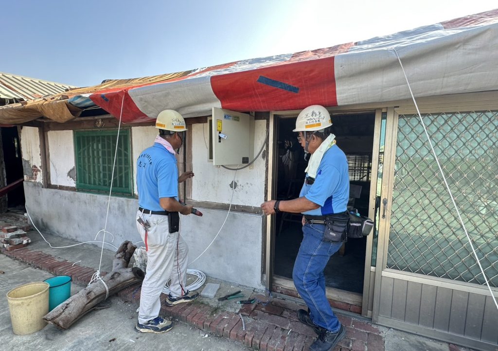 勞工局指出,鹽水區陳姓案主與丈夫扶養三名子女,案主從事家庭手工,其丈夫從事挖土機作業臨時工,每月收入不穩,依靠補助過生活。案主房屋因今年七月丹娜絲風災肆虐受損,無法負擔修繕費用,做工行善團志工於十月底前往會勘,並安排後續修繕期程。電氣工會志工十六日前往進行斷電作業並配置臨時用電,以利後續施工作業更順利。