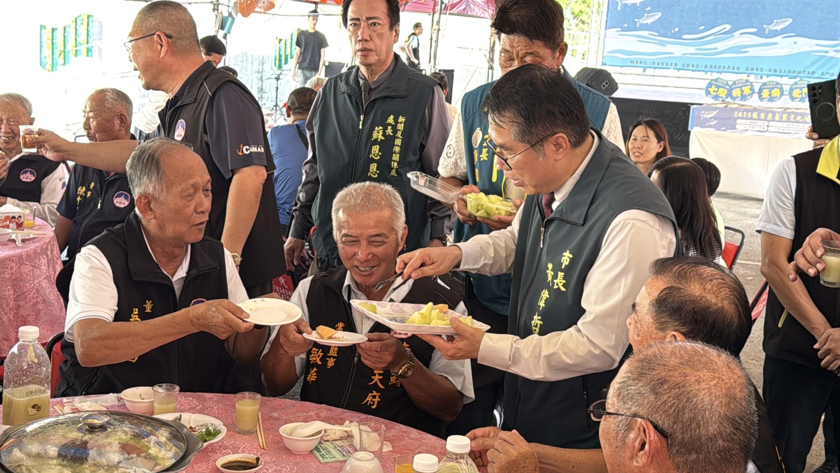 市長黃偉哲到場力挺漁民表示,虱目魚全身是寶,魚皮、魚肉、魚腸、魚肚都受歡迎,早期是台南西部沿海民眾的生計來源,也是日常的營養來源。