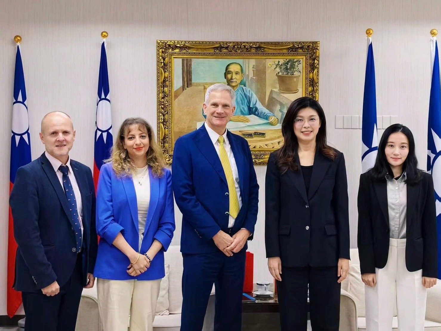 國民黨主席鄭麗文(右二)與德國在台協會處長狄嘉信(左三)會面,雙方就台灣政局、兩岸關係等進行友好且建設性交流。(取自鄭麗文臉書)