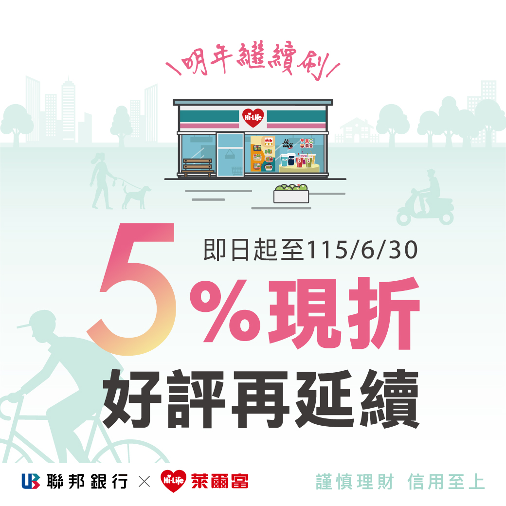 聯邦銀行持續深耕零售金融版圖,積極推動「金融×零售」整合策略,攜手萊爾富便利商店打造多元生活金融生態圈。為回饋廣大消費者支持,聯邦銀行宣布延長「萊爾富刷聯邦信用卡╱金融卡筆筆現折5%」活動至115年,藉此鞏固卡友忠誠度並提升卡片使用頻率。