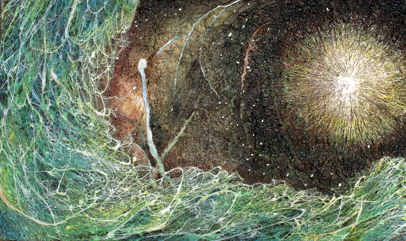 杯盤與水流碰撞的脆響,人語混雜著鳥語,以為自己是清醒的,一再將杯盞遞給你,瓷白樸素的杯盞,還不曉得往後會在另一個屋子裡,一起蒸煮濃烈的茶,無法透光深黑如夜空的紅茶,苦得堪比藥草,倒入純粹甜膩的鮮乳,澀味心灼顫抖,而那瓷白的杯盞,此刻暈懸在學院正上方,窗簾再緊閉也有裂縫,那是光線所到之處,是軟布飄蕩中忽而敞開的,而我疲軟於乳膠床墊,悶壓下身體的重量,床墊的孔洞滲出微水來,自以為能緊閉軟布的窗簾,瓷白的杯盞在天空中,那道軟布的裂隙,橫亙在那枚圓形光暈中,瓷白的杯盞有了裂痕,往後還會有更多無以返復的裂痕,直到杯盞碎裂,直到陽光變換了色澤,暖橘的、紫紅的霞光,是碎的,是那麼魔幻且美好。