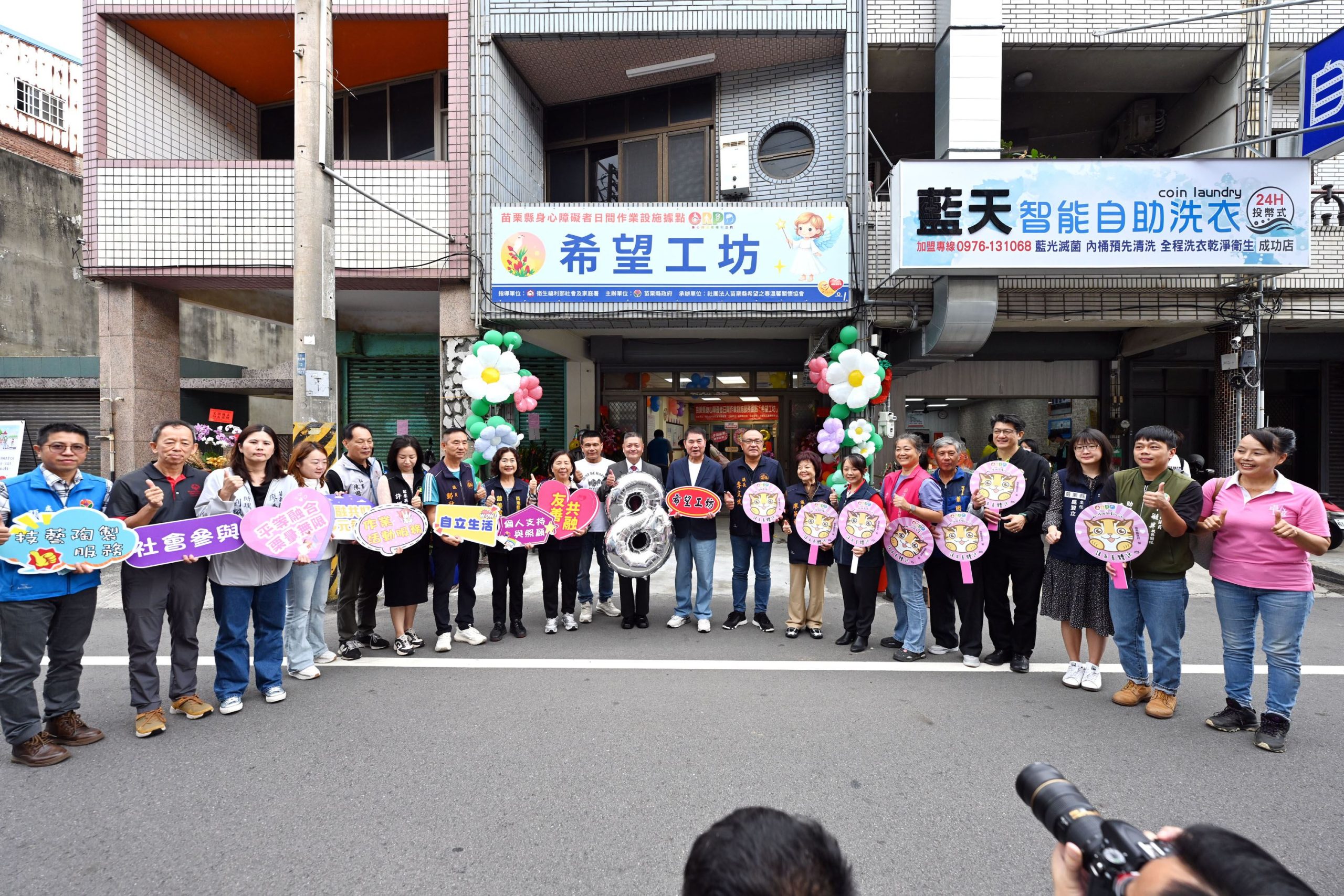 苗栗縣第八處身心障礙者小型作業所「希望工坊」十七日在後龍鎮揭牌,縣長鍾東錦特別感謝議員林寶珠提供房子作為身心障礙者日間作業場所,希望有需要的鄉親可以到希望工坊,除了學習生活能力,也有機會學到一技之長,為踏入職場就業做準備。