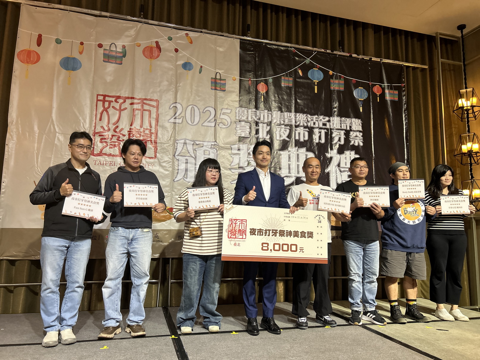 臺北夜市打牙祭夜市神美食獲獎攤商上台領獎。