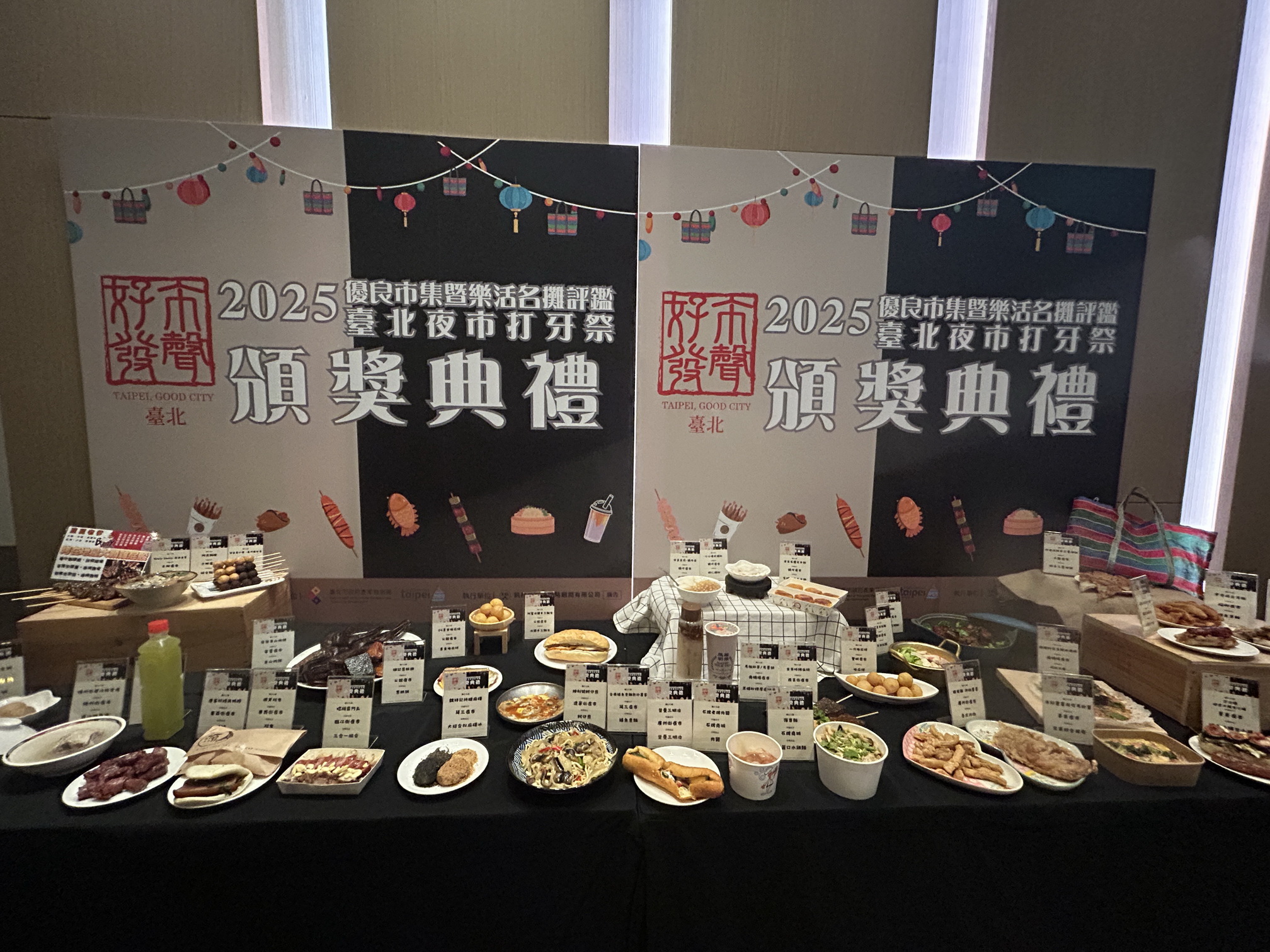優良市集、樂活名攤及臺北夜市打牙祭辦理頒獎典禮,現場展出一系列優秀的夜市美食。