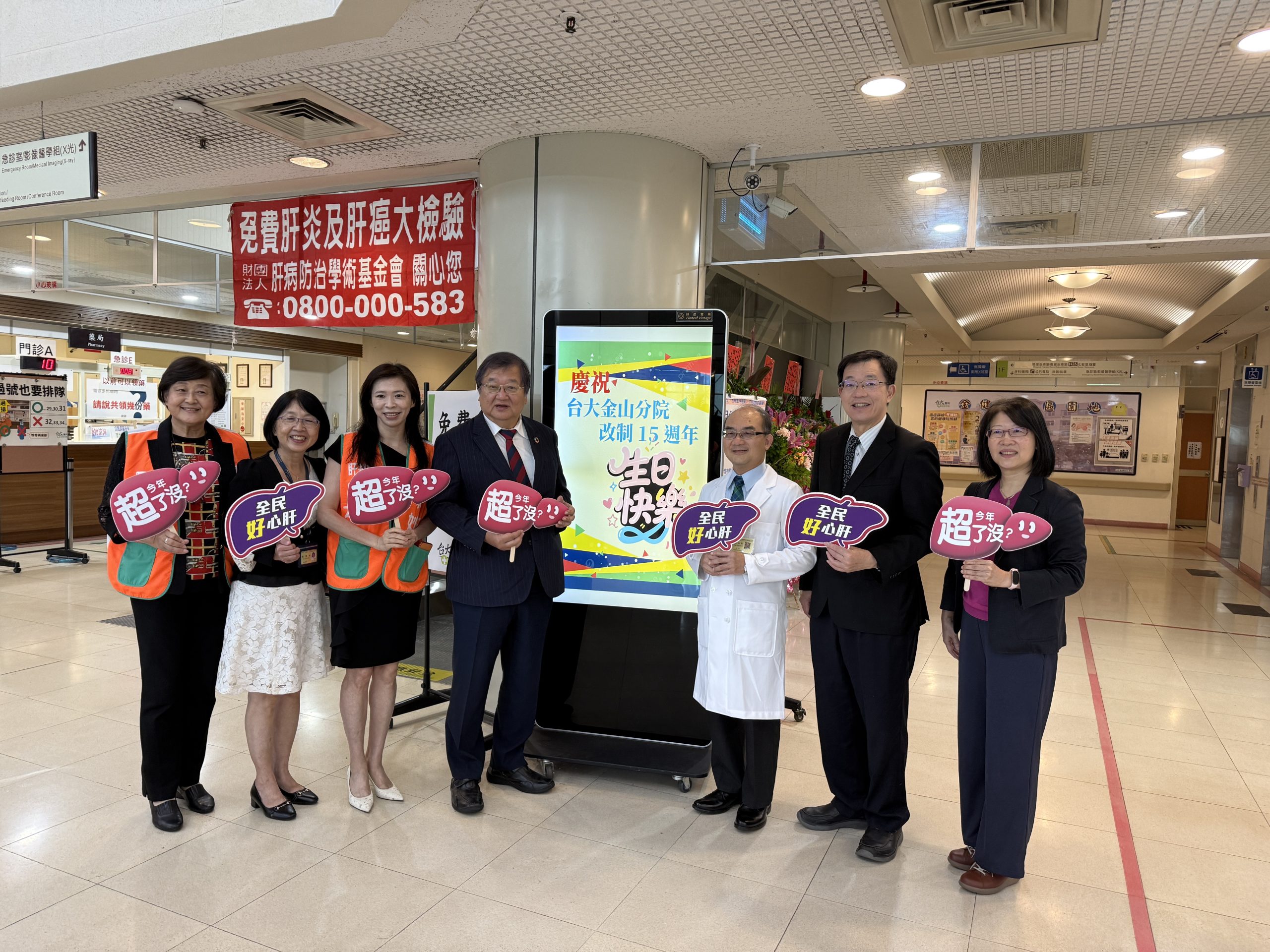 本次院慶開幕典禮,在門診報到系統捐贈儀式中畫下句點,另為期一週的院慶週系列活動,內容涵蓋免費肝炎及肝癌抽血檢查、健康小站、音樂饗宴及北海藝廊展出,希望推廣健康知識,提升民眾對疾病預防的認識,活動時間自11月17日至20日,歡迎有興趣的民眾踴躍前往參加。