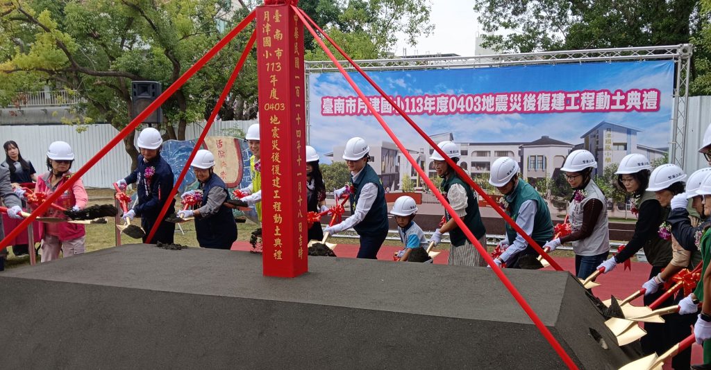 月津國小整建工程動土奠基典禮,包括市府副秘書長徐健麟、教育局副局長楊智雄、及多位民意代表、家長、社區民眾與師生觀禮下進行動土典禮。