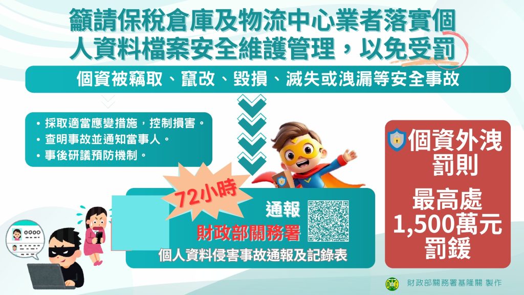 基隆關籲請保稅倉庫及物流中心落實個資安全維護 以免受罰