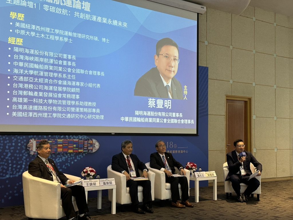 中華民國輪船公會全國聯合會理事長蔡豐明致詞時指出,航運作為全球經濟的重要運輸方式,近年面臨地緣政治、供應鏈重組及氣候變遷等挑戰,正在效率與成本、永續發展及數位能源轉型間尋求平衡點,並自法規及實務面深入探討海事人才培育及無人船議題、數位共享及AI自動化應用,也改變了海運專業人員的思維,並呼籲現在正是航運產業積極投入綠色海運、進行數位、能源轉型及永續發展的最佳時機,期待交通部、航港局帶領航運產業繼續航向有序且共融智慧的航運新時代,協助航運產業持續經營,提供更加友善及具效率的營運環境。