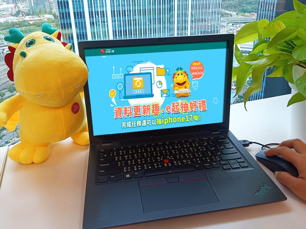 為鼓勵更多保戶加入永續行列,台灣人壽「資料更新趣 e起抽好禮」放送好康,即日起至2026年3月底止,透過官網「網路會員專區」、「台灣人壽App」或業務員協助辦理完成「保戶基本資料更新、同意使用電子保單及設定電子通知函」三大任務,不僅能快速下載電子保單,透過e-mail接收承保、受理、送金單等20項服務,還有機會獲得iPhone17大獎。