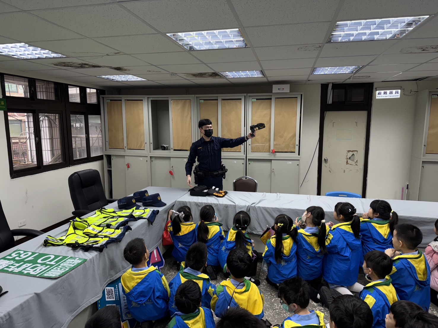 活動最後的課程是警察應勤裝備介紹,桌上陳列的各式警用裝備吸引孩子們目光,小學童迫不及待穿上防彈衣、反光背心、戴上警帽,並揮舞指揮棒,親身體驗成為小小警察的感受。這次豐富的體驗活動,讓學童留下深刻印象,也成功讓交通安全觀念從小扎根。