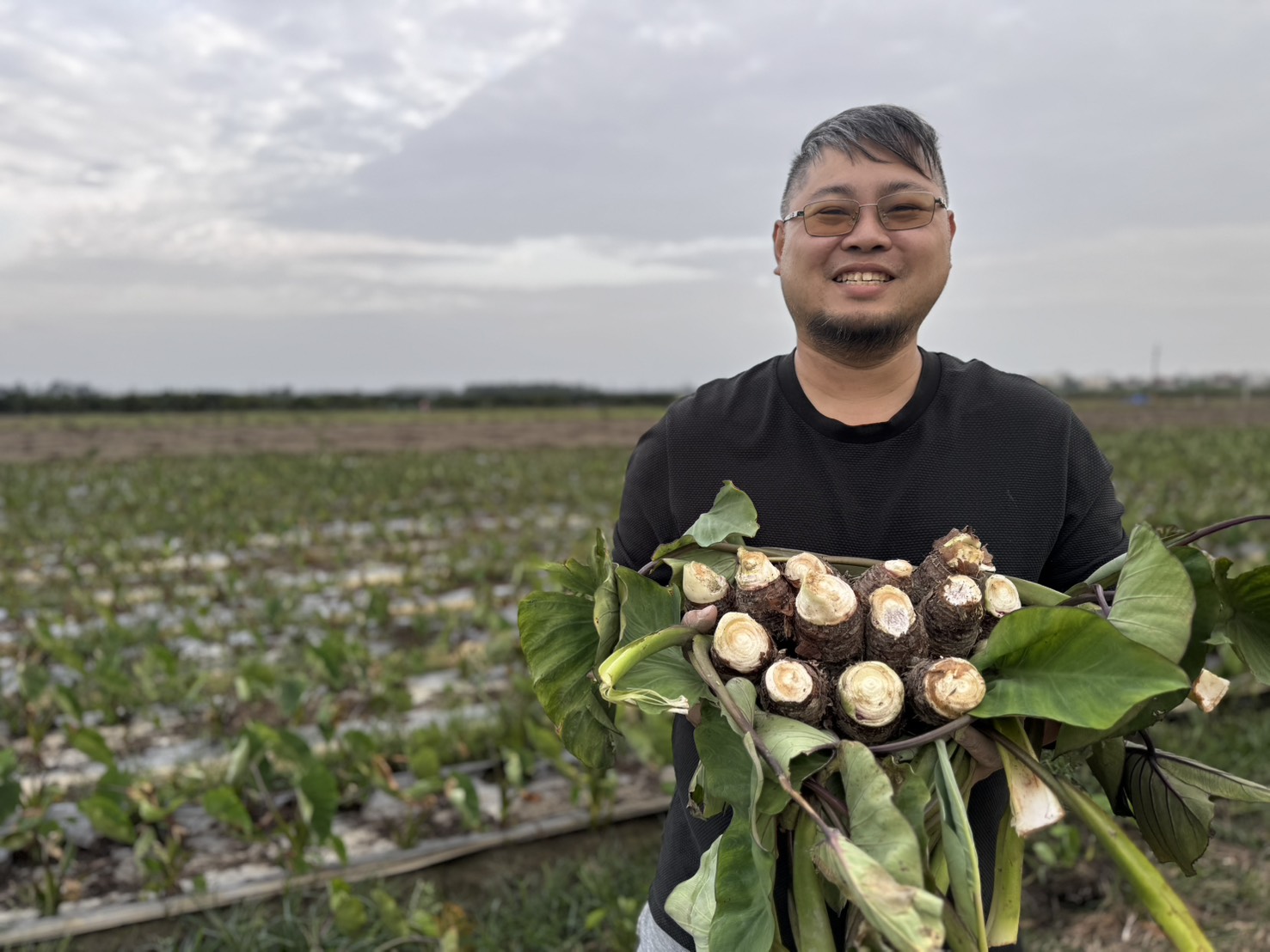 陳冠彣表示,選種水芋頭是一種友善種植,採取的是水旱輪作方式,藉此可以提升農地的地力,並可以使病蟲害、雜草得到自然控制,且所種植的水芋頭口感綿密,小巧玲瓏,非常值得品嘗。