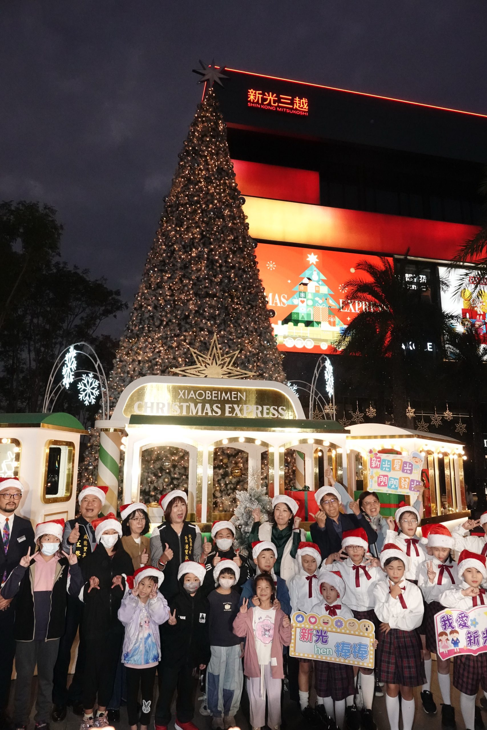 新光三越台南小北門店十八日晚為十二米耶誕樹舉行「耶誕暖心列車」點燈儀式,今年與社會局合辦「心願認養」愛心公益活動,邀請一百位家扶小朋友寫下心願,由客人化身耶誕老公公將認養的禮品送給小朋友,助他們「心願成真」。