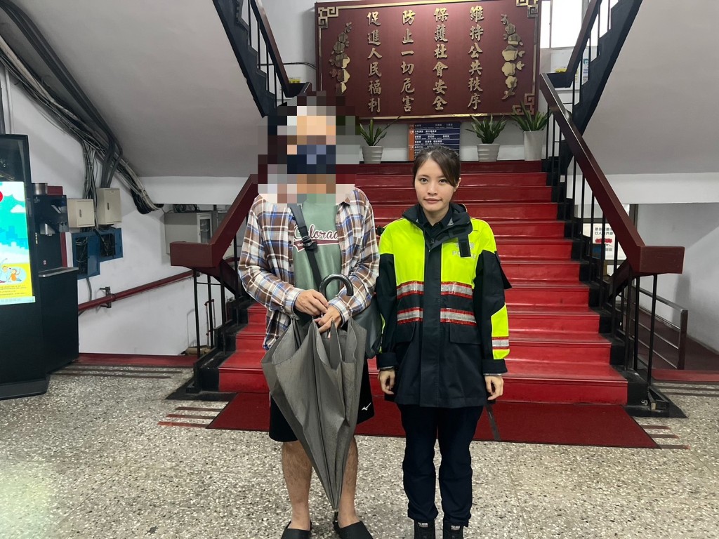 王員抵達後立即調閱並比對周邊監視器畫面,發現一名男子疑似將雨傘取走,遂循線掌握男子動向並展開訪查,於半小時內即前往該男子住處,順利尋獲失傘。男子得知誤拿他人雨傘後,立即致歉並歸還。經了解,該男子所持雨傘與報案人雨傘外觀、顏色極為相似,才會一時誤拿。警方協助雙方釐清誤會後,順利將愛傘物歸原主,圓滿化解這起烏龍事件,報案人對警方積極迅速的協助深表感謝,也肯定王員在雨天仍堅守崗位、服務熱忱不減。