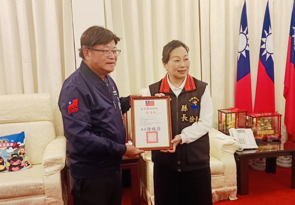 19 日下午昆和之友會一行人抵達花蓮縣政府,由花蓮縣長徐榛蔚在縣府招待室主持授贈儀式。縣府將於後續把四季被分送至光復鄉、鳳林鎮及其他受災家庭,協助居民在冬季前獲得實質支持。