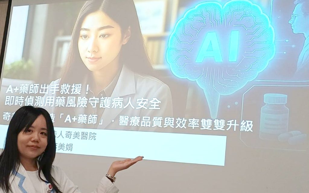 奇美醫院藥劑部小組長李美娟表示,隨著AI在醫療領域的應用日益成熟,奇美醫推出由藥劑部自主研發的「A+藥師」臨床智慧輔助系統。這套結合AI與臨床決策支持系統,不僅能協助藥師在繁忙的病房中即時發現、主動偵測潛在的用藥風險,例如劑量過高、交互作用或不當用藥等問題,並自動生成藥師建議報告。