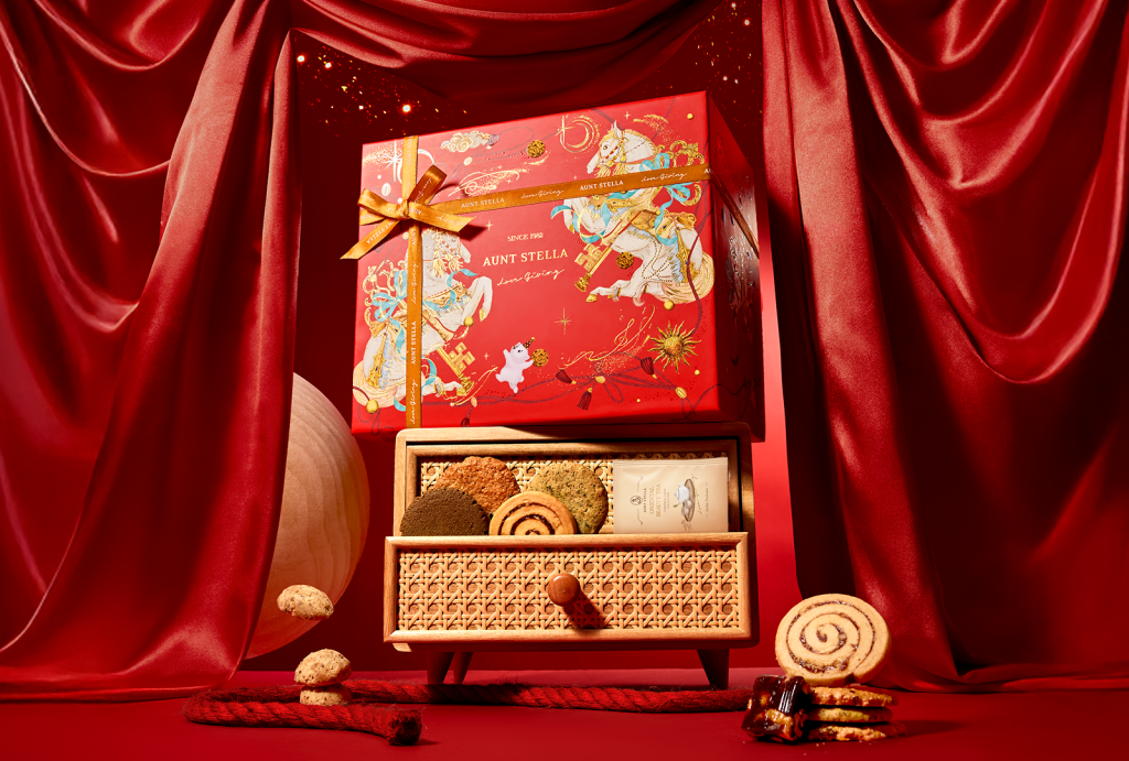 秉持「Love the planet like you love cookies」理念,Aunt Stella 詩特莉持續以行動實踐永續理念。推出的「瑞駒迎春」環保公益禮盒,以再生紙塑製底盒、FSC 森林認證紙材與大豆油墨印刷製成,不僅友善環境,製造過程的碳排放量甚至低於一杯市售拿鐵,展現品牌對地球永續的堅持與溫柔關懷。同時,「瑞駒迎春」環保公益禮盒及「春舞和樂」鐵盒禮盒亦結合陽光基金會合作專案,每售出一盒即捐出 15 元,支持「顏損弱勢家庭專案計畫」。「春舞和樂」鐵盒更特別附上由陽光小畫家——陳依忻親手繪製的春聯,畫作以明亮色彩描繪新年幸福意象,象徵祝福、勇氣與希望隨甜香一同傳遞。