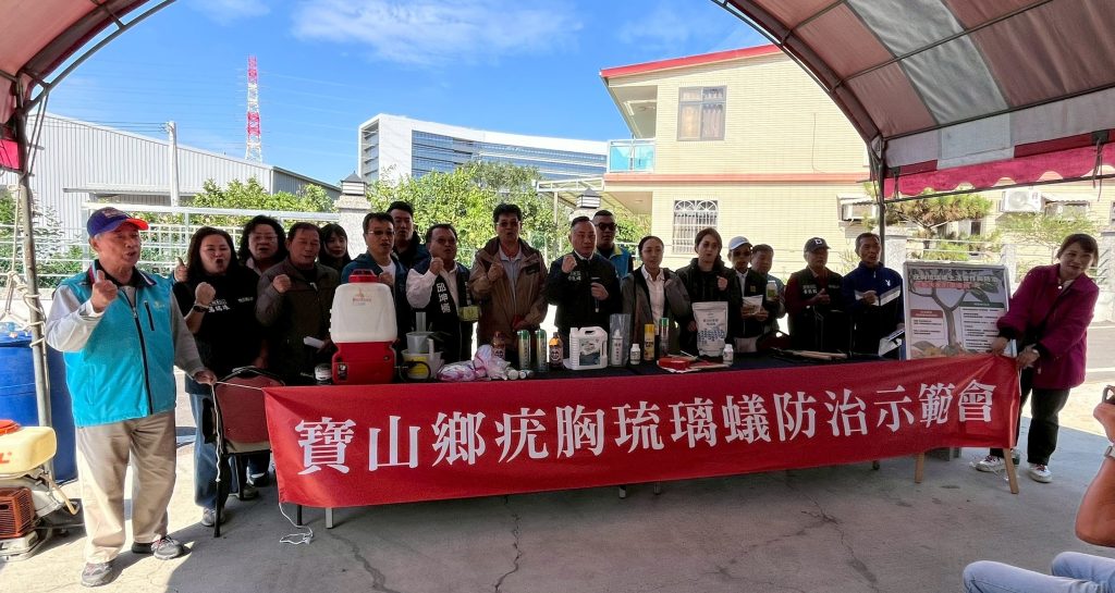 為落實蟻害防治工作,強化地方對疣胸琉璃蟻之防治與管理,農業部動植物防疫檢疫署委託臺北市立大學與台灣環境有害生物管理協會辦理新竹地區的蟻害防治調查計畫,二十日在寶山鄉科環路空地,與寶山鄉公所合辦首場「疣胸琉璃蟻防治示範會」,示範地點選在蟻害情形嚴重之一的寶山鄉大崎村。