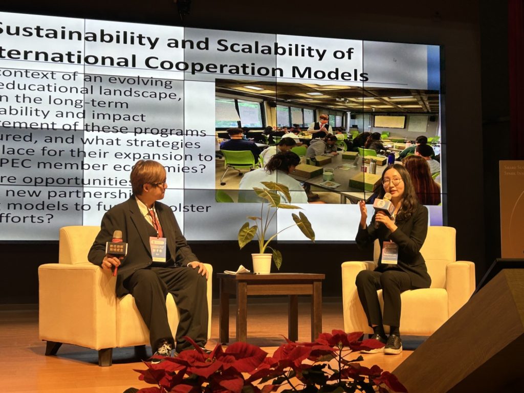 韓國 IACE 資深專員SUEYOON LEE以「數位學習在國際教育合作中的運用」為題發表專題演講,捷克查理大學教授Tom Hk及Svatava Janoukov 分享「全球永續指標在地化」教育實踐,從國際視角探討教育永續與數位連結。
